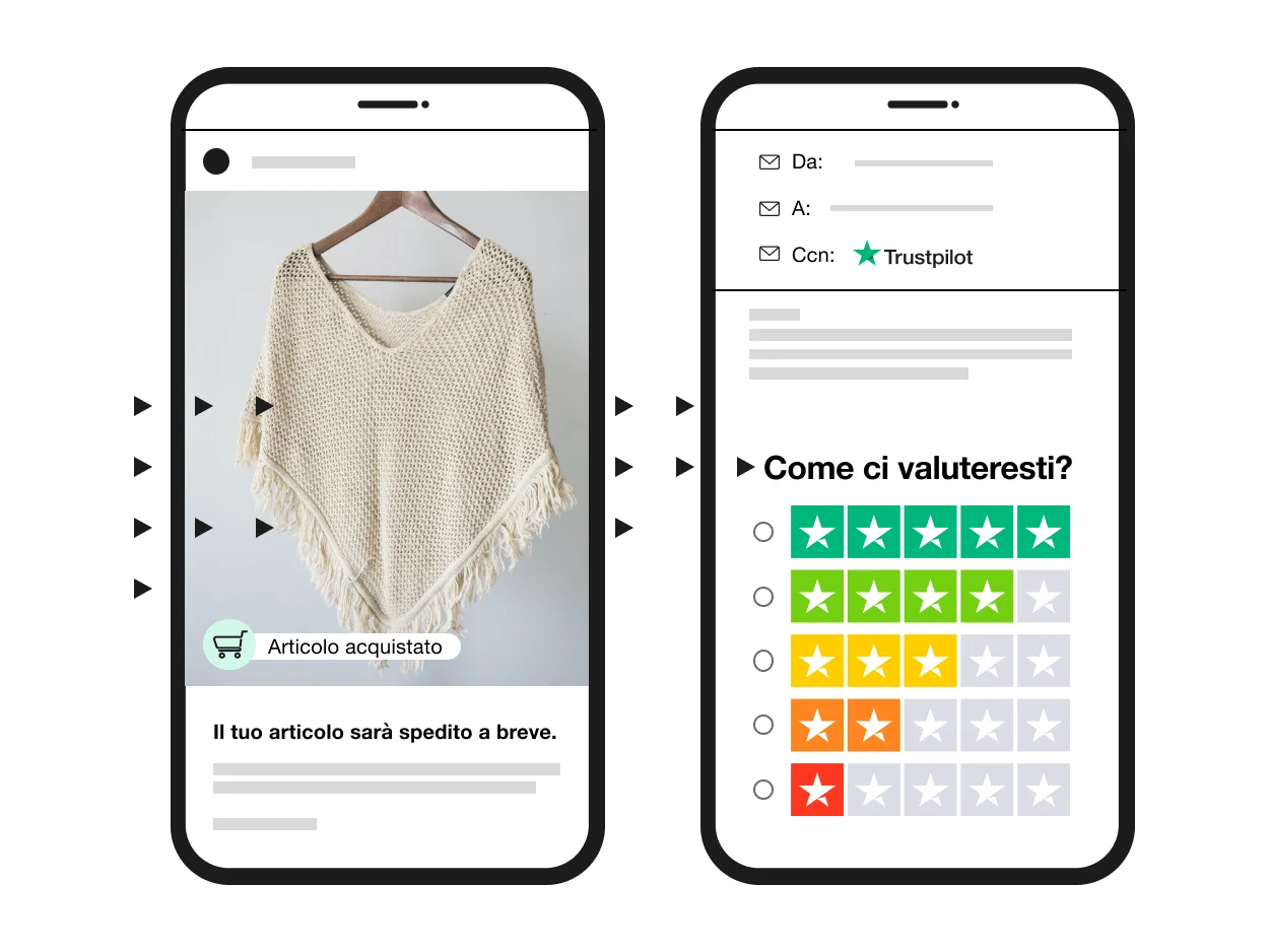 Manda automaticamente una email di invito alla recensione ai tuoi clienti a ogni loro acquisto e massimizza il numero di recensioni ricevute per il tuo business.